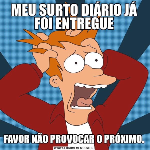 MEU SURTO DIÁRIO JÁ FOI ENTREGUE FAVOR NÃO PROVOCAR O PRÓXIMO.
