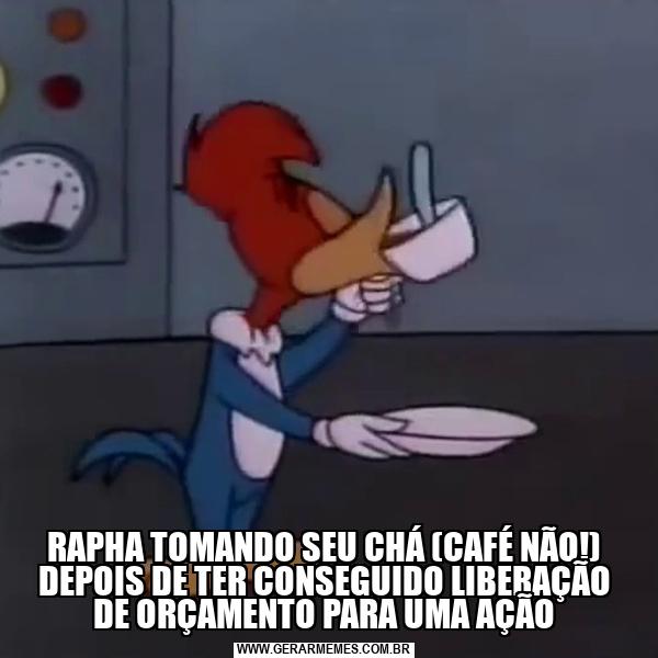 RAPHA TOMANDO SEU CHÁ (CAFÉ NÃO!) DEPOIS DE TER CONSEGUIDO LIBERAÇÃO DE ORÇAMENTO PARA UMA AÇÃO