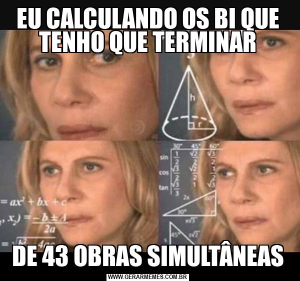 EU CALCULANDO OS BI QUE TENHO QUE TERMINAR DE 43 OBRAS SIMULTÂNEAS