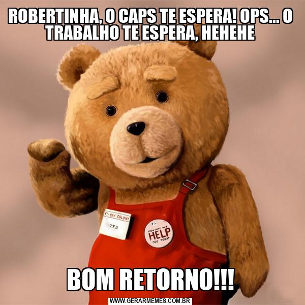 ROBERTINHA, O CAPS TE ESPERA! OPS... O TRABALHO TE ESPERA, HEHEHE BOM RETORNO!!!