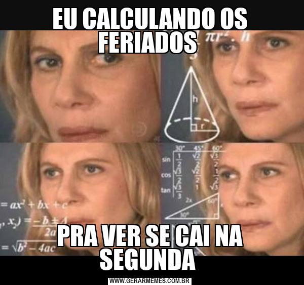 EU CALCULANDO OS FERIADOS PRA VER SE CAI NA SEGUNDA