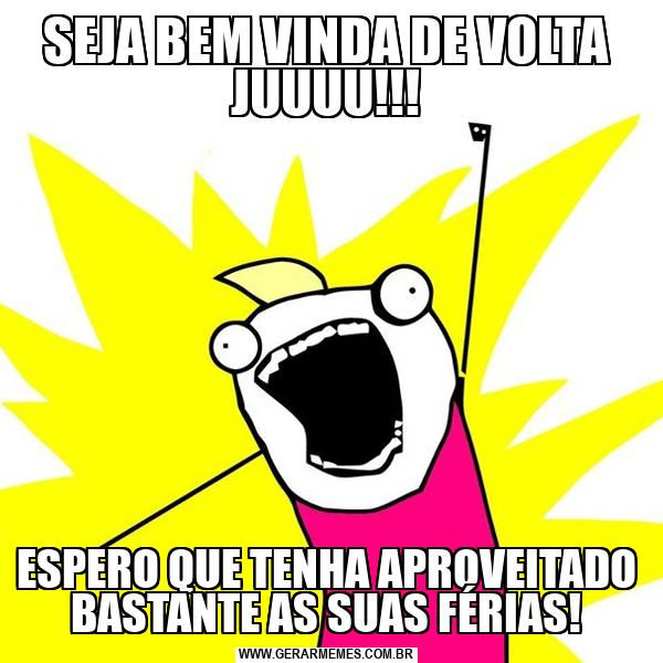 SEJA BEM VINDA DE VOLTA JUUUU!!! ESPERO QUE TENHA APROVEITADO BASTANTE AS SUAS FÉRIAS!