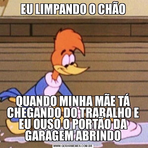EU LIMPANDO O CHÃO QUANDO MINHA MÃE TÁ CHEGANDO DO TRABALHO E EU OUSO O PORTÃO DA GARAGEM ABRINDO