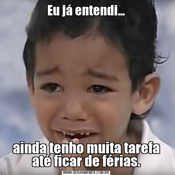 Eu já entendi... ainda tenho muita tarefa até ficar de férias.