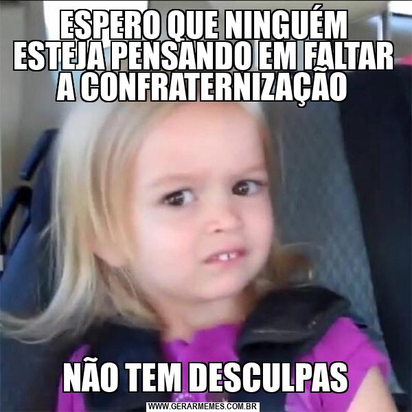 ESPERO QUE NINGUÉM ESTEJA PENSANDO EM FALTAR A CONFRATERNIZAÇÃO NÃO TEM DESCULPAS
