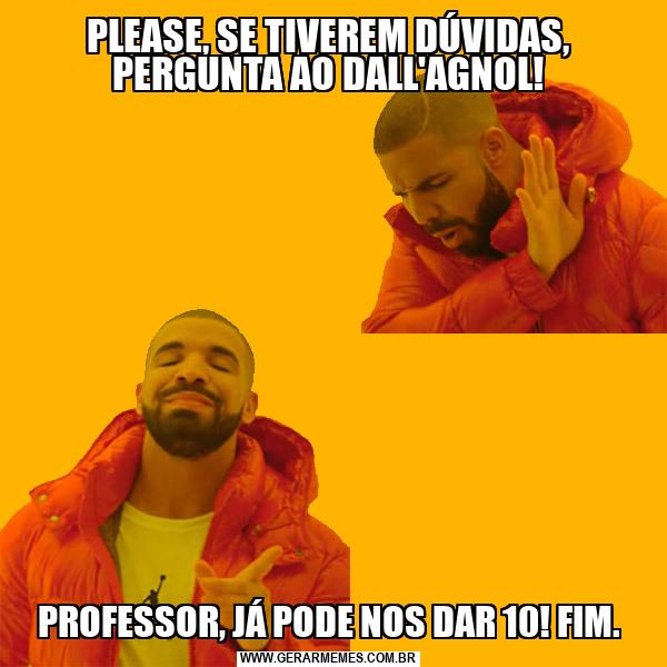 PLEASE, SE TIVEREM DÚVIDAS, PERGUNTA AO DALL'AGNOL! PROFESSOR, JÁ PODE NOS DAR 10! FIM.