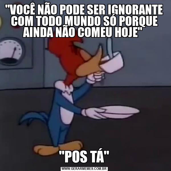 "VOCÊ NÃO PODE SER IGNORANTE COM TODO MUNDO SÓ PORQUE AINDA NÃO COMEU HOJE" "POS TÁ"