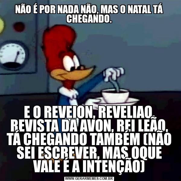 NÃO É POR NADA NÃO, MAS O NATAL TÁ CHEGANDO. E O REVEION, REVELIAO, REVISTA DA AVON, REI LEÃO, TÁ CHEGANDO TAMBÉM (NÃO SEI ESCREVER, MAS OQUE VALE É A INTENÇÃO)