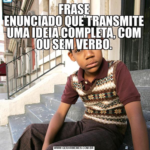 FRASE ENUNCIADO QUE TRANSMITE UMA IDEIA COMPLETA, COM OU SEM VERBO.