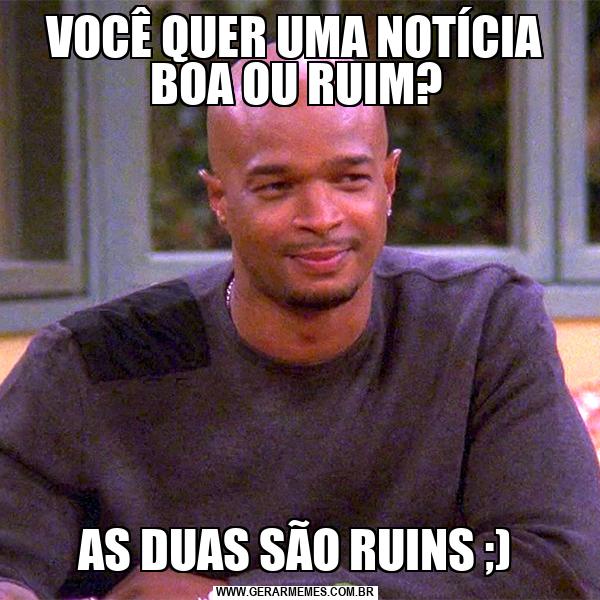 VOCÊ QUER UMA NOTÍCIA BOA OU RUIM? AS DUAS SÃO RUINS ;)
