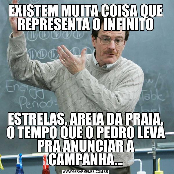 EXISTEM MUITA COISA QUE REPRESENTA O INFINITO ESTRELAS, AREIA DA PRAIA, O TEMPO QUE O PEDRO LEVA PRA ANUNCIAR A CAMPANHA...