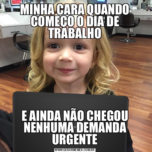 MINHA CARA QUANDO COMEÇO O DIA DE TRABALHO E AINDA NÃO CHEGOU NENHUMA DEMANDA URGENTE