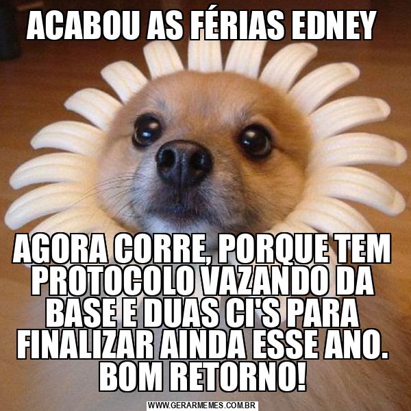 ACABOU AS FÉRIAS EDNEY AGORA CORRE, PORQUE TEM PROTOCOLO VAZANDO DA BASE E DUAS CI'S PARA FINALIZAR AINDA ESSE ANO. BOM RETORNO!