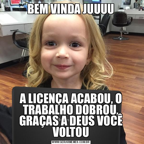 BEM VINDA JUUUU A LICENÇA ACABOU, O TRABALHO DOBROU, GRAÇAS A DEUS VOCÊ VOLTOU