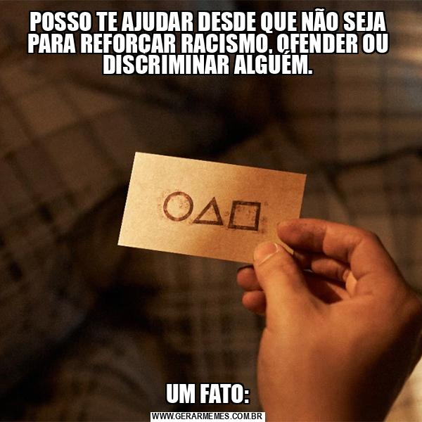 POSSO TE AJUDAR DESDE QUE NÃO SEJA PARA REFORÇAR RACISMO, OFENDER OU DISCRIMINAR ALGUÉM. UM FATO: