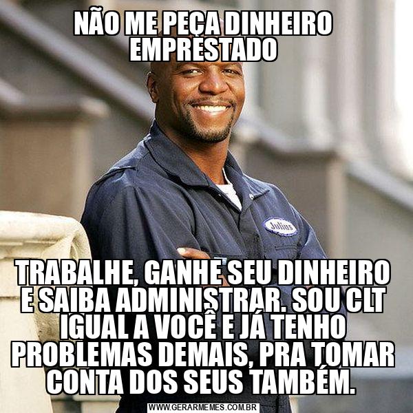 NÃO ME PEÇA DINHEIRO EMPRESTADO TRABALHE, GANHE SEU DINHEIRO E SAIBA ADMINISTRAR. SOU CLT IGUAL A VOCÊ E JÁ TENHO PROBLEMAS DEMAIS, PRA TOMAR CONTA DOS SEUS TAMBÉM.