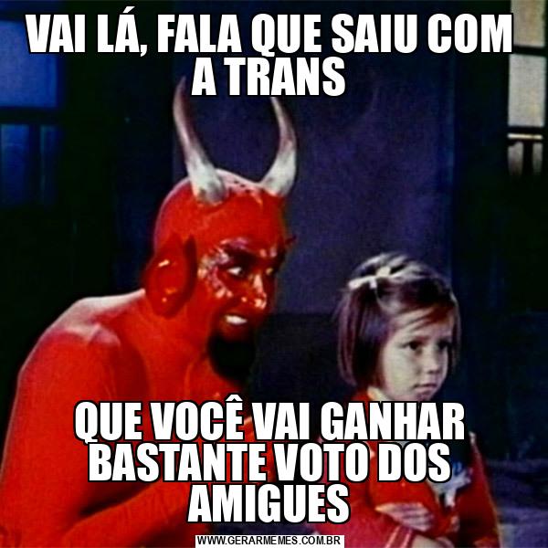 VAI LÁ, FALA QUE SAIU COM A TRANS QUE VOCÊ VAI GANHAR BASTANTE VOTO DOS AMIGUES