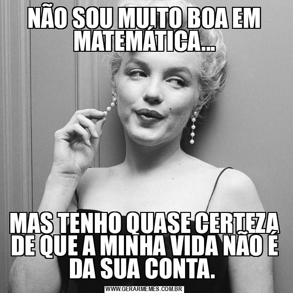 NÃO SOU MUITO BOA EM MATEMÁTICA... MAS TENHO QUASE CERTEZA DE QUE A MINHA VIDA NÃO É DA SUA CONTA.