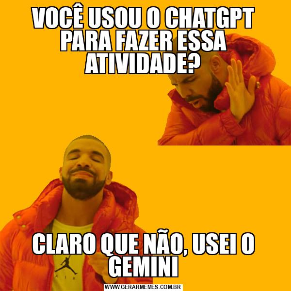 VOCÊ USOU O CHATGPT PARA FAZER ESSA ATIVIDADE? CLARO QUE NÃO, USEI O GEMINI