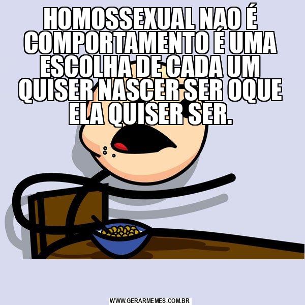 HOMOSSEXUAL NAO É COMPORTAMENTO É UMA ESCOLHA DE CADA UM QUISER NASCER SER OQUE ELA QUISER SER.