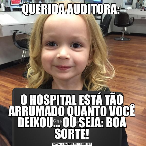 QUERIDA AUDITORA: O HOSPITAL ESTÁ TÃO ARRUMADO QUANTO VOCÊ DEIXOU... OU SEJA: BOA SORTE!