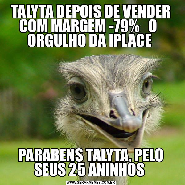 TALYTA DEPOIS DE VENDER COM MARGEM -79% O ORGULHO DA IPLACE PARABENS TALYTA, PELO SEUS 25 ANINHOS