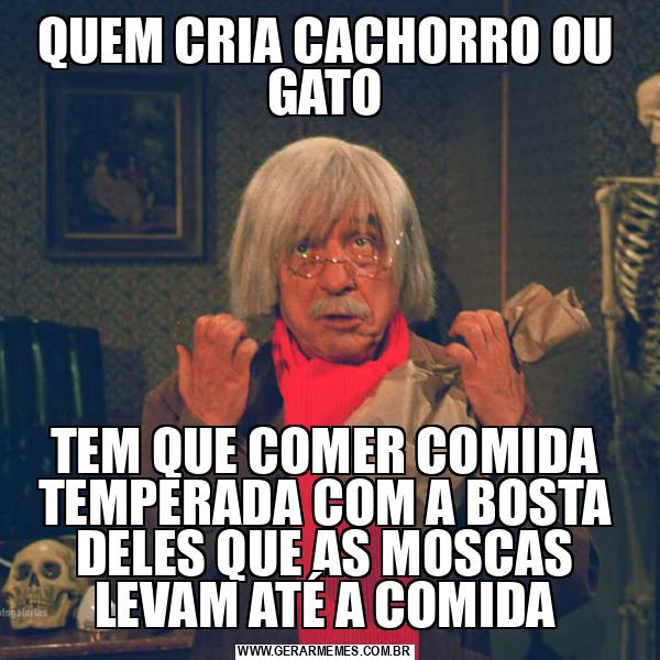 QUEM CRIA CACHORRO OU GATO TEM QUE COMER COMIDA TEMPERADA COM A BOSTA DELES QUE AS MOSCAS LEVAM ATÉ A COMIDA