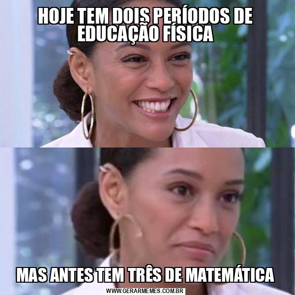HOJE TEM DOIS PERÍODOS DE EDUCAÇÃO FÍSICA MAS ANTES TEM TRÊS DE MATEMÁTICA