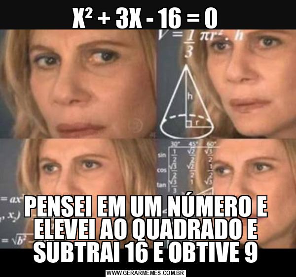 X² + 3X - 16 = 0 PENSEI EM UM NÚMERO E ELEVEI AO QUADRADO E SUBTRAI 16 E OBTIVE 9