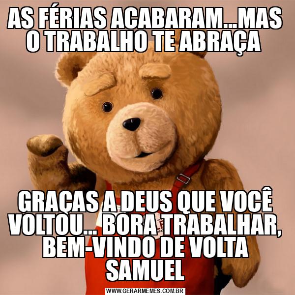 AS FÉRIAS ACABARAM...MAS O TRABALHO TE ABRAÇA GRAÇAS A DEUS QUE VOCÊ VOLTOU... BORA TRABALHAR, BEM-VINDO DE VOLTA SAMUEL