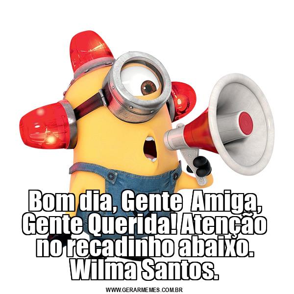 Bom dia, Gente Amiga, Gente Querida! Atenção no recadinho abaixo. Wilma Santos.