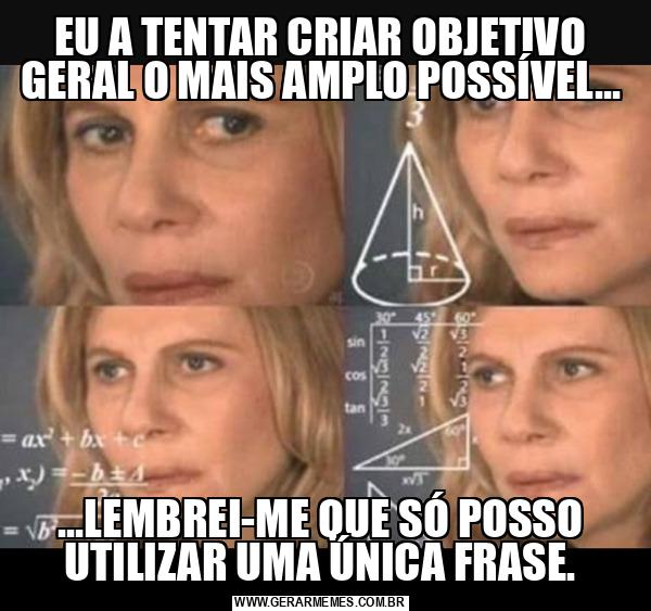 EU A TENTAR CRIAR OBJETIVO GERAL O MAIS AMPLO POSSÍVEL... ...LEMBREI-ME QUE SÓ POSSO UTILIZAR UMA ÚNICA FRASE.