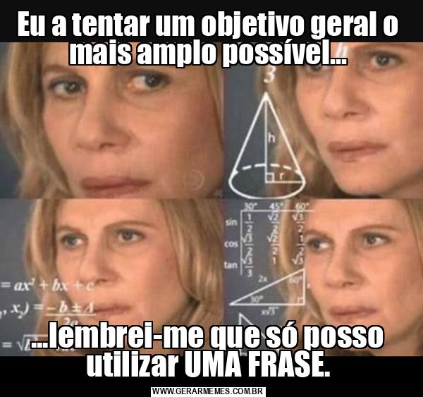 Eu a tentar um objetivo geral o mais amplo possível... ...lembrei-me que só posso utilizar UMA FRASE.