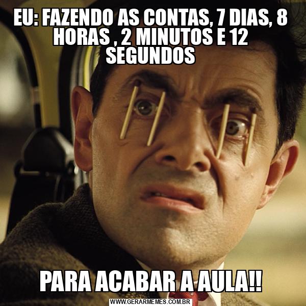 EU: FAZENDO AS CONTAS, 7 DIAS, 8 HORAS , 2 MINUTOS E 12 SEGUNDOS PARA ACABAR A AULA!!