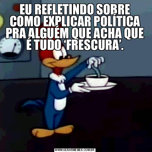 EU REFLETINDO SOBRE COMO EXPLICAR POLÍTICA PRA ALGUÉM QUE ACHA QUE É TUDO ‘FRESCURA’.