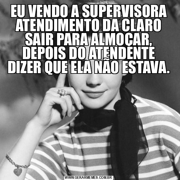 EU VENDO A SUPERVISORA ATENDIMENTO DA CLARO SAIR PARA ALMOÇAR, DEPOIS DO ATENDENTE DIZER QUE ELA NÃO ESTAVA.