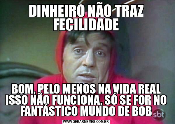 DINHEIRO NÃO TRAZ FECILIDADE BOM, PELO MENOS NA VIDA REAL ISSO NÃO FUNCIONA, SÓ SE FOR NO FANTÁSTICO MUNDO DE BOB