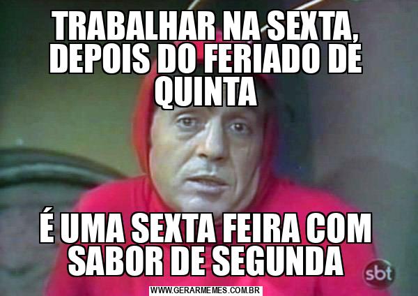 TRABALHAR NA SEXTA, DEPOIS DO FERIADO DE QUINTA É UMA SEXTA FEIRA COM SABOR DE SEGUNDA