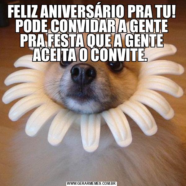 FELIZ ANIVERSÁRIO PRA TU! PODE CONVIDAR A GENTE PRA FESTA QUE A GENTE ACEITA O CONVITE.