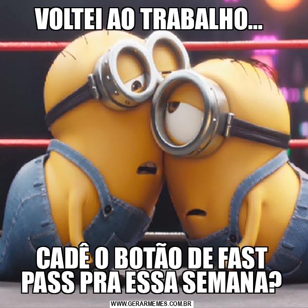 VOLTEI AO TRABALHO… CADÊ O BOTÃO DE FAST PASS PRA ESSA SEMANA?