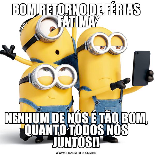 BOM RETORNO DE FÉRIAS FÁTIMA NENHUM DE NÓS É TÃO BOM, QUANTO TODOS NÓS JUNTOS!!