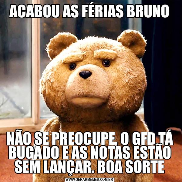 ACABOU AS FÉRIAS BRUNO NÃO SE PREOCUPE, O GFD TÁ BUGADO E AS NOTAS ESTÃO SEM LANÇAR. BOA SORTE