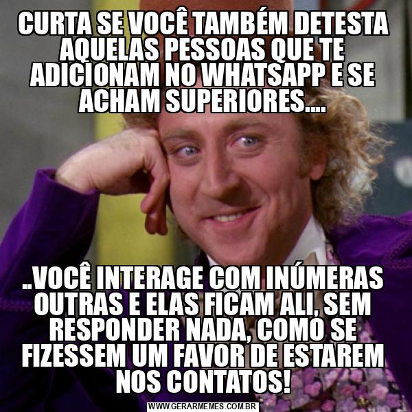CURTA SE VOCÊ TAMBÉM DETESTA AQUELAS PESSOAS QUE TE ADICIONAM NO WHATSAPP E SE ACHAM SUPERIORES.... ..VOCÊ INTERAGE COM INÚMERAS OUTRAS E ELAS FICAM ALI, SEM RESPONDER NADA, COMO SE FIZESSEM UM FAVOR DE ESTAREM NOS CONTATOS!