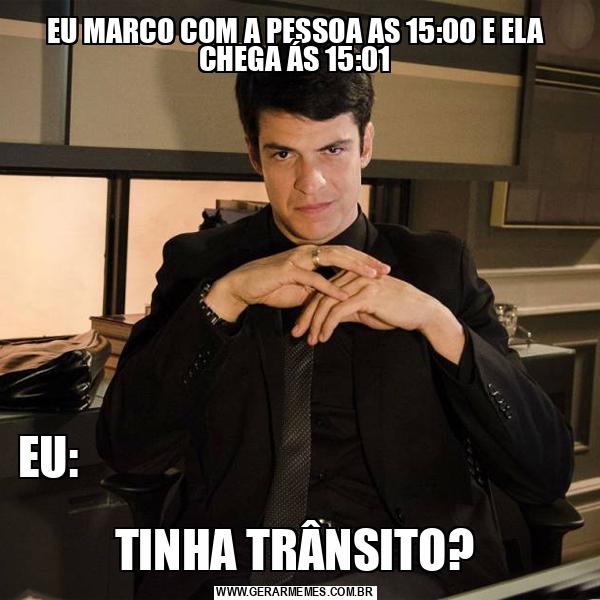 EU MARCO COM A PESSOA AS 15:00 E ELA CHEGA ÁS 15:01 EU: TINHA TRÂNSITO?
