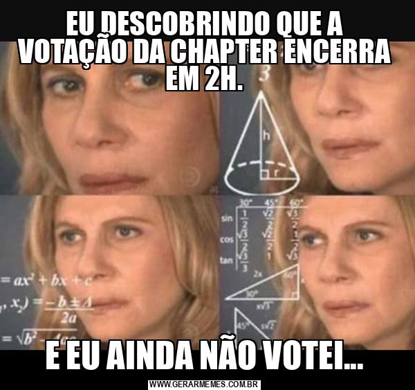 EU DESCOBRINDO QUE A VOTAÇÃO DA CHAPTER ENCERRA EM 2H. E EU AINDA NÃO VOTEI...