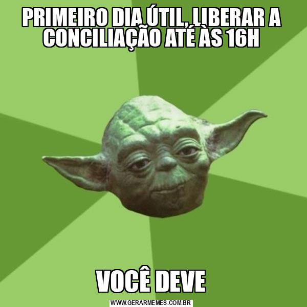 PRIMEIRO DIA ÚTIL, LIBERAR A CONCILIAÇÃO ATÉ ÀS 16H VOCÊ DEVE