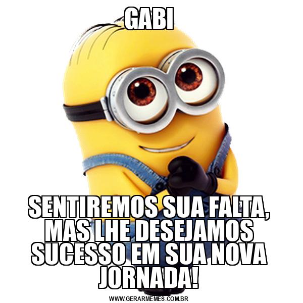 GABI SENTIREMOS SUA FALTA, MAS LHE DESEJAMOS SUCESSO EM SUA NOVA JORNADA!