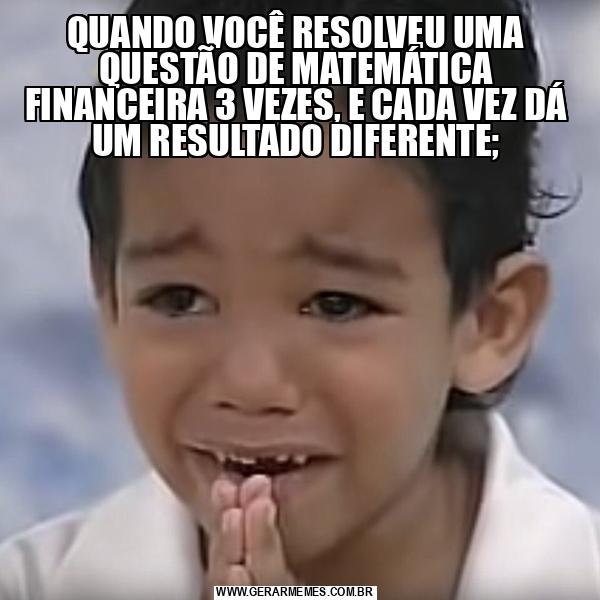 QUANDO VOCÊ RESOLVEU UMA QUESTÃO DE MATEMÁTICA FINANCEIRA 3 VEZES, E CADA VEZ DÁ UM RESULTADO DIFERENTE;