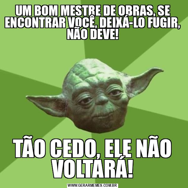 UM BOM MESTRE DE OBRAS, SE ENCONTRAR VOCÊ, DEIXÁ-LO FUGIR, NÃO DEVE! TÃO CEDO, ELE NÃO VOLTARÁ!