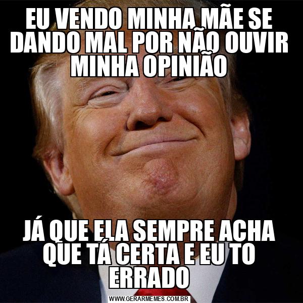 EU VENDO MINHA MÃE SE DANDO MAL POR NÃO OUVIR MINHA OPINIÃO JÁ QUE ELA SEMPRE ACHA QUE TÁ CERTA E EU TO ERRADO